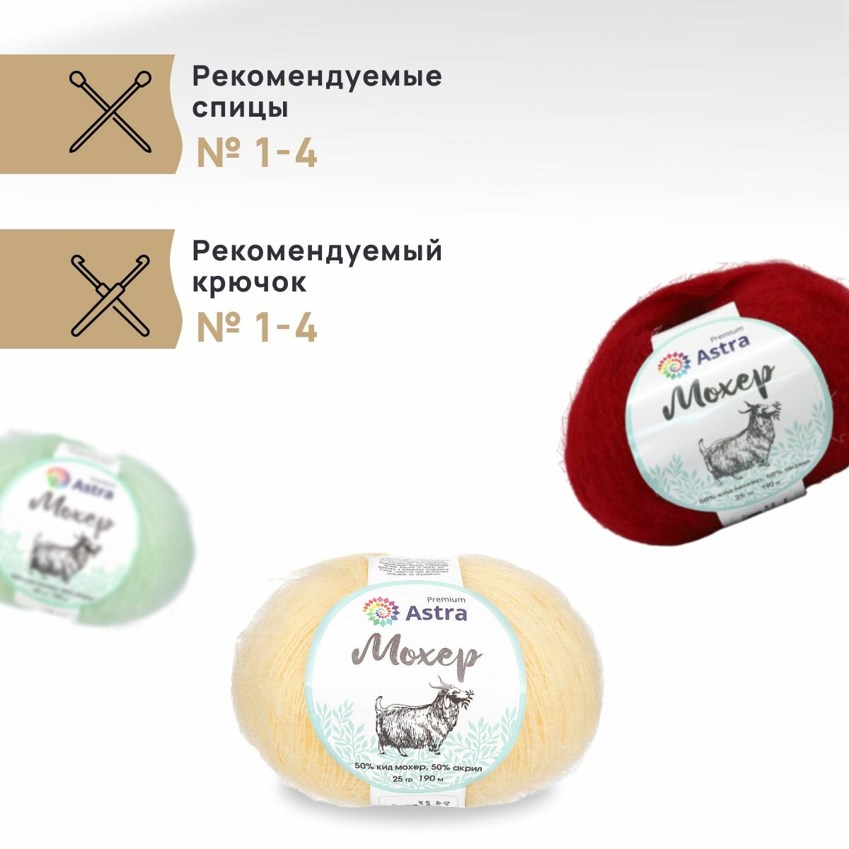 Пряжа для вязания Astra Premium 'Мохер' (Mohair), 25г, 190м (50% кид мохер, 50% акрил) (17 светлый беж), 4 мотка 1 030 ₽
