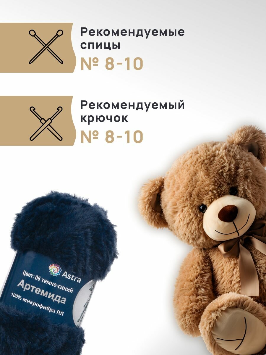 Пряжа для вязания Astra Premium 'Артемида' 100г, 60м (100% микрофибра ПЛ) (06 темно-синий), 3 мотка информация: