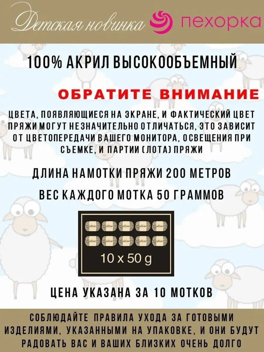 Пряжа Пехорка Детская новинка, 100 % акрил, 50 г, 200 м, 10 шт