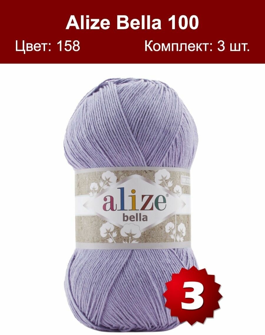 Пряжа Alize Bella 100 сиреневый (158), 100%хлопок, 360м, 100г, 5шт