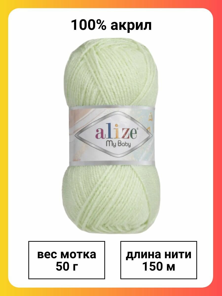 Пряжа для вязания Alize My Baby (188) светлый салат, 50 г, 150 м, 5 штук информация: