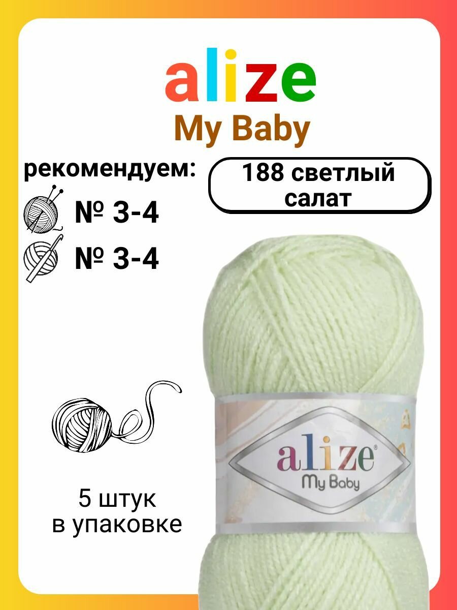 Пряжа MY BABY (Alize), св. салат - 188, 100% акрил, 5 мотков, 50 г, 150 м. 625 ₽