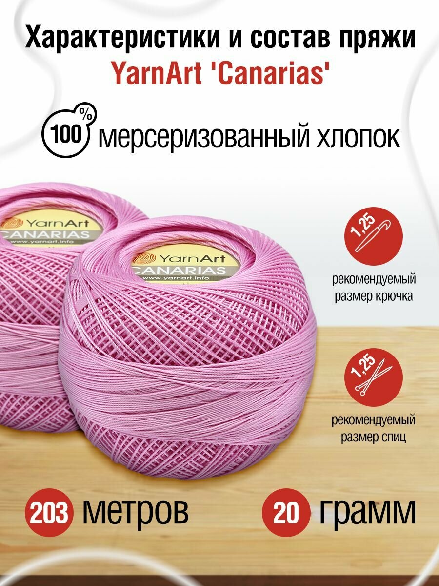 Пряжа для вязания YarnArt 'Canarias' 20г, 203м (100% мерсеризированный хлопок) (6319 розово-сиреневый), 10 мотков информация: