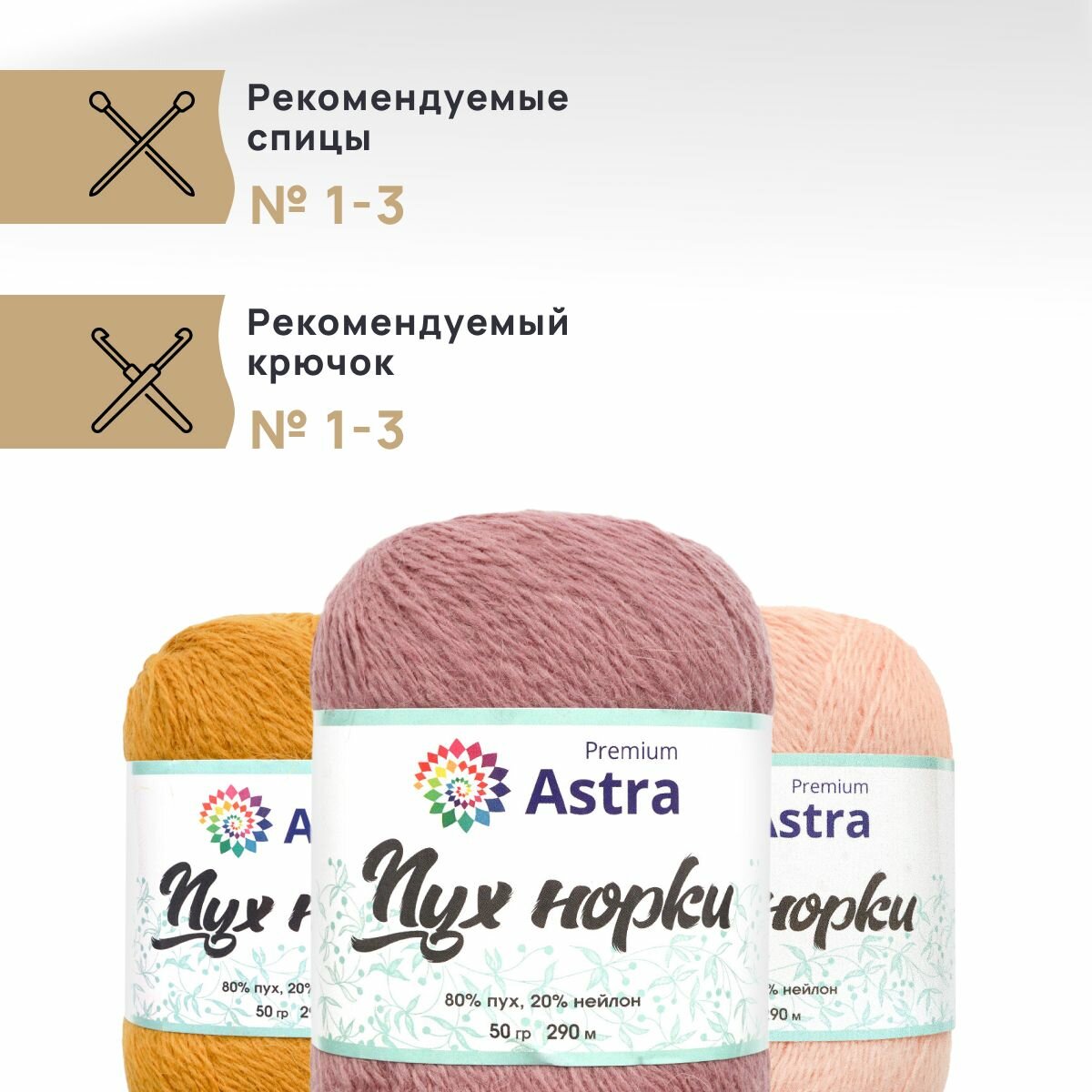 Пряжа Astra Premium 'Пух норки' (Mink yarn), 50 г, 290 м (+/- 5%) (80% пух, 20% нейлон) (+ нить 20 г)
