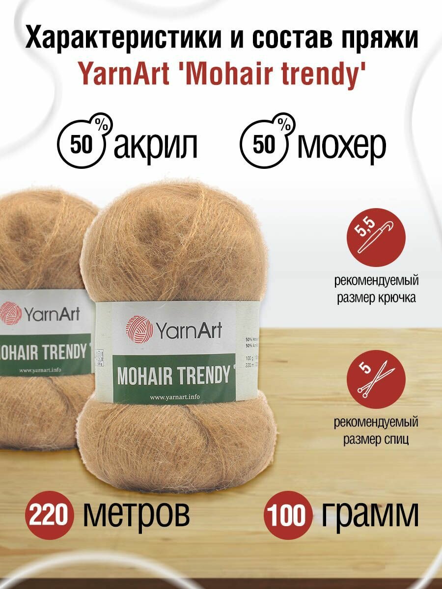 Пряжа для вязания YarnArt 'Mohair trendy' 100г, 220м (50% мохер, 50% акрил) (116 кофе с молоком), 5 мотков информация: