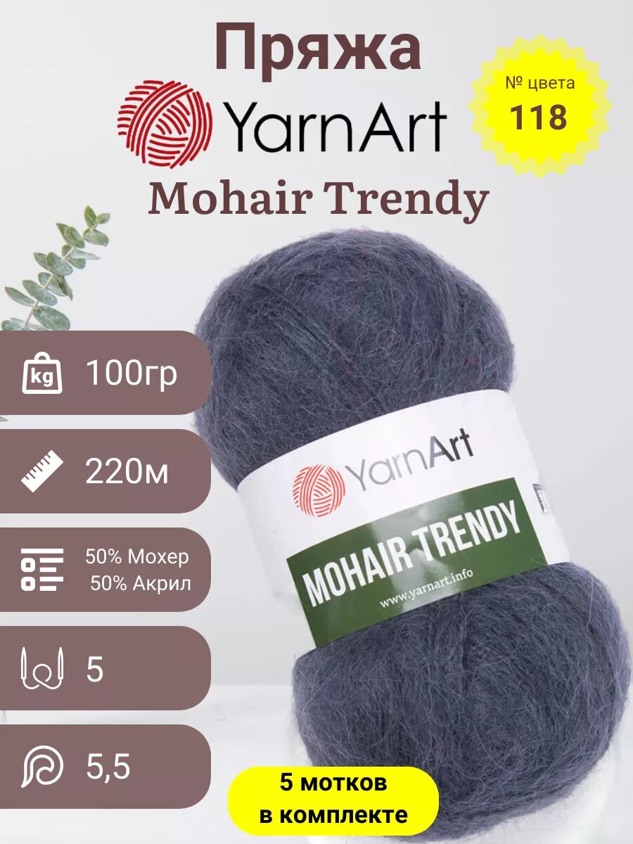 Пряжа Mohair Trendy YarnArt, тем.серый - 118, 50% акрил, 50% мохер, 5 мотков, 100 г., 220 м. информация: