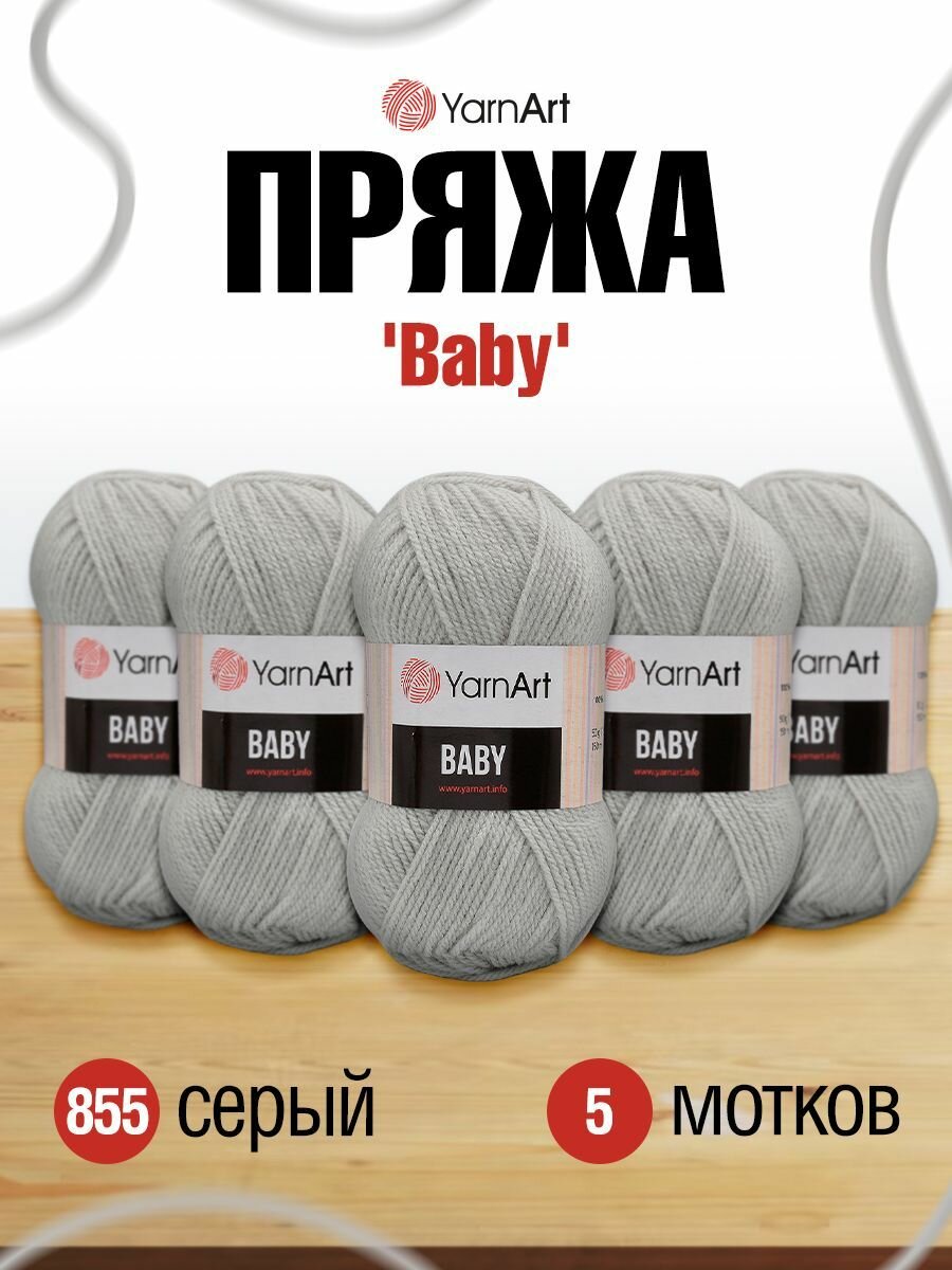 Пряжа для вязания YarnArt 'Baby' 50г, 150м (100% акрил) (855 серый), 5 мотков
