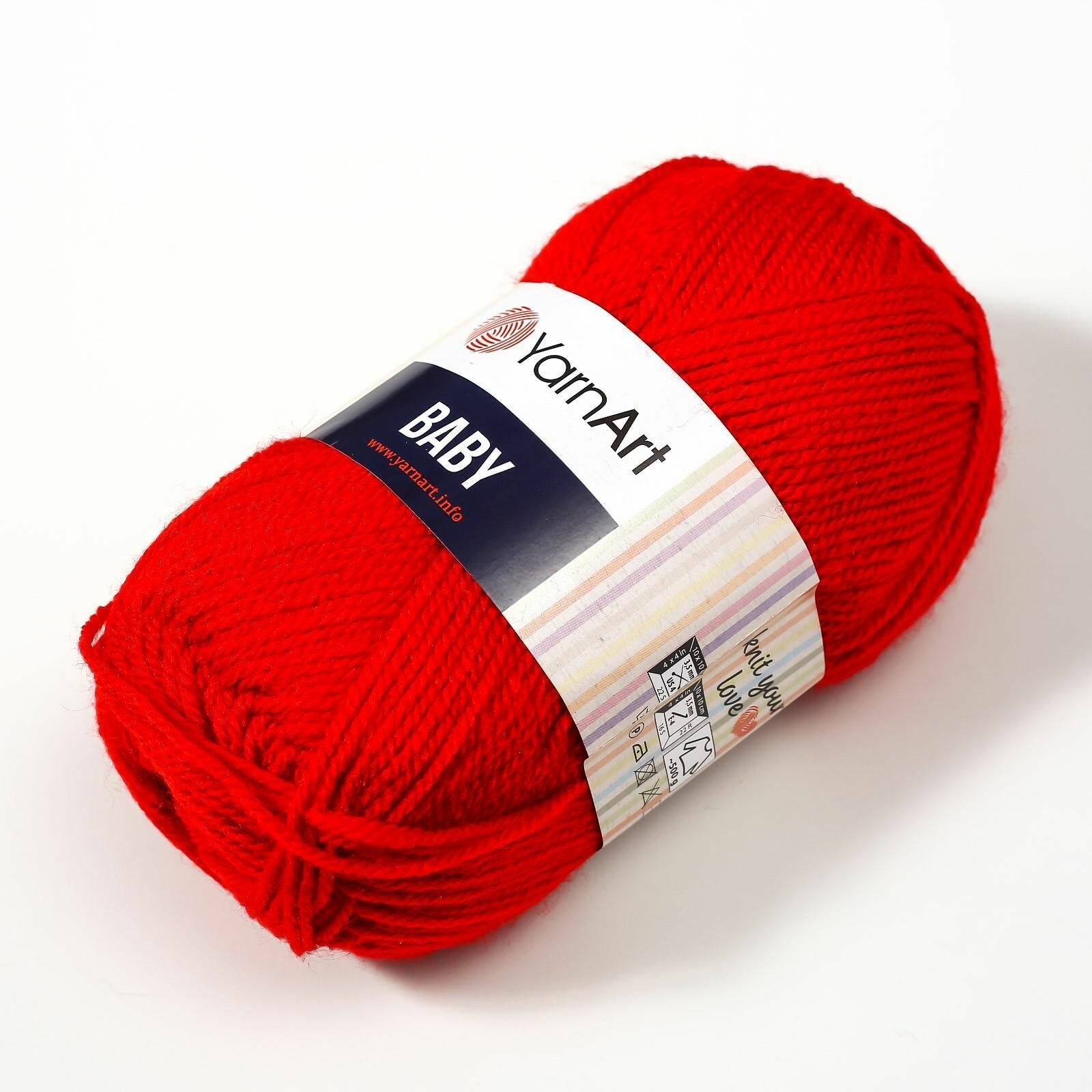 Пряжа для вязания YarnArt Baby (ЯрнАрт Беби) - 1 моток 156 красный, гипоаллергенная для детских изделий, 100% акрил, 150м/50г