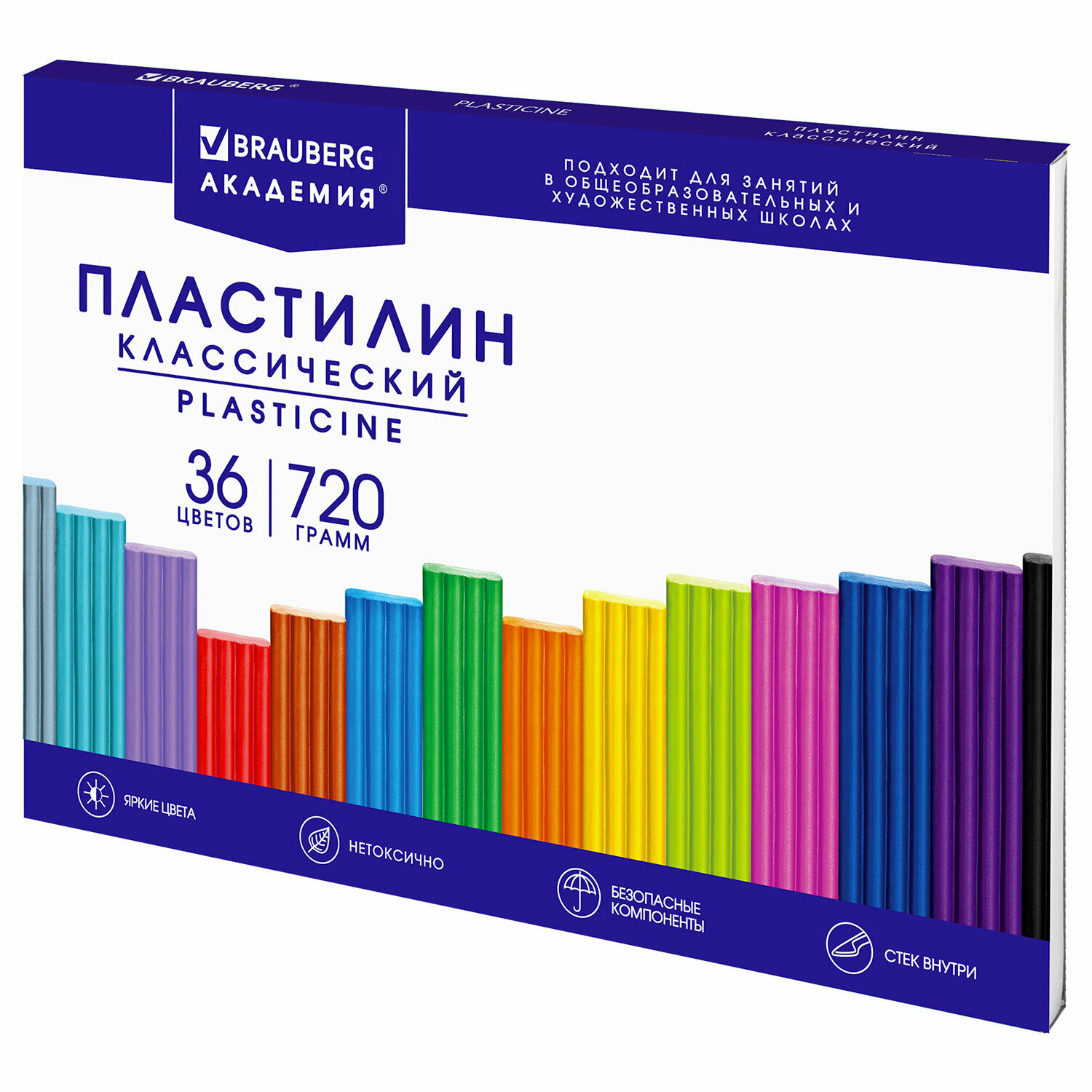 Пластилин классический BRAUBERG "академия классическая", 36 цветов, 720 г, стек, высшее качество, 106425