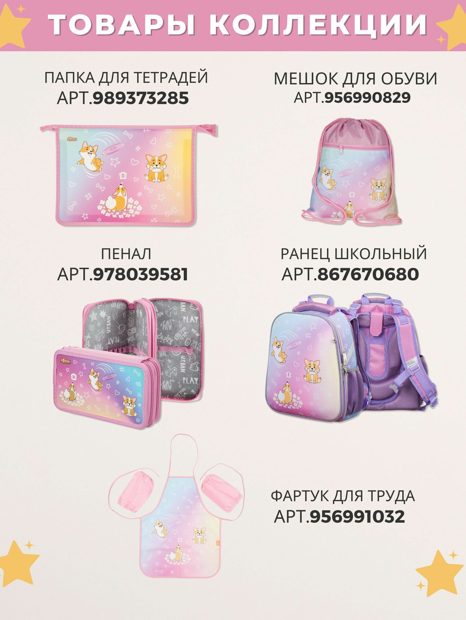 Пенал книжка, Комус, Corgi time, школьный, 2 отделения информация:
