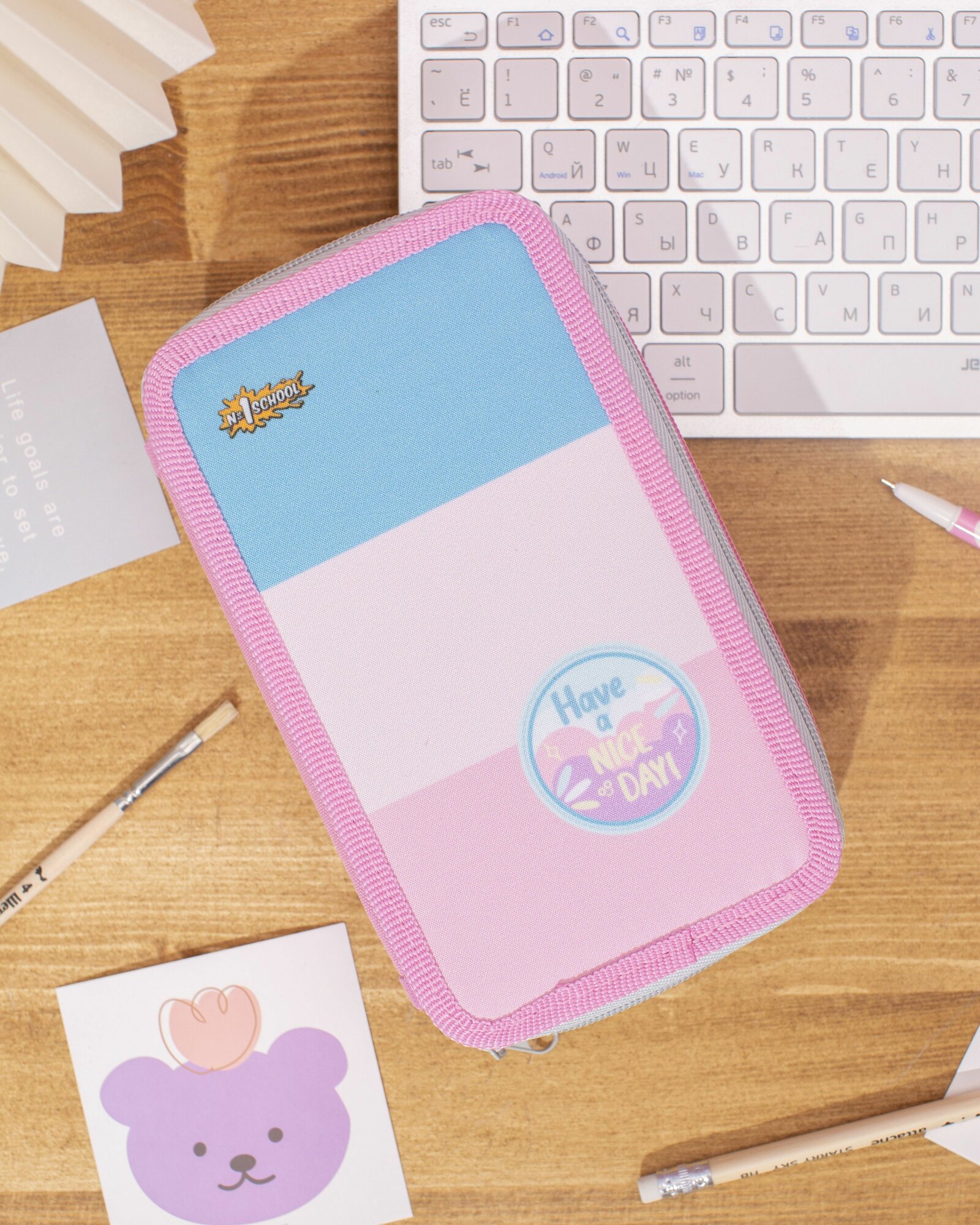 Пенал №1 School "Casual", розово-голубой, ткань, 3 отделения, 190х110 мм (ПКТ 12-20) 864 ₽