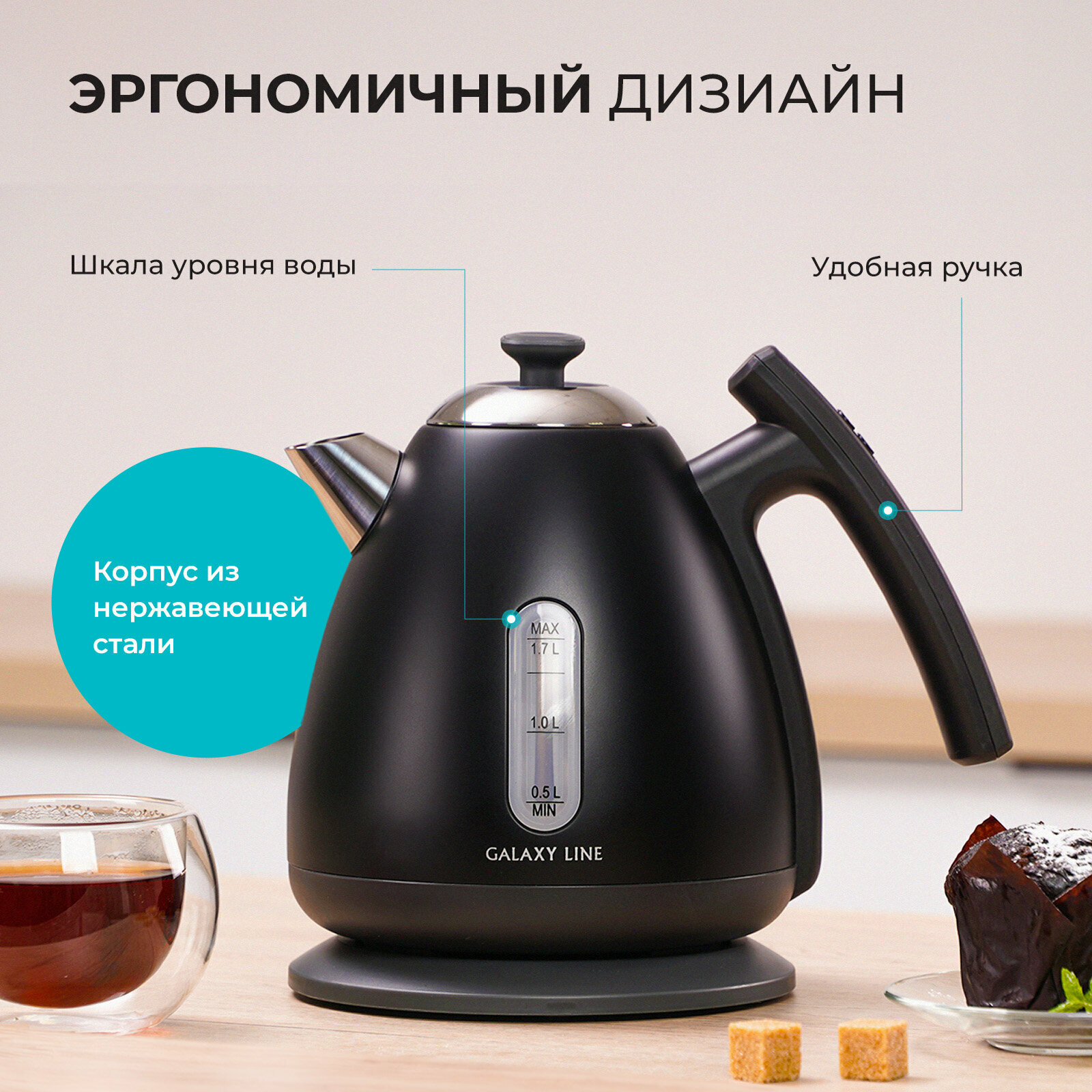 Отзывы на Чайник электрический Galaxy Line GL0343, 1,7 литра, мощность 2200Вт, контроллер Strix