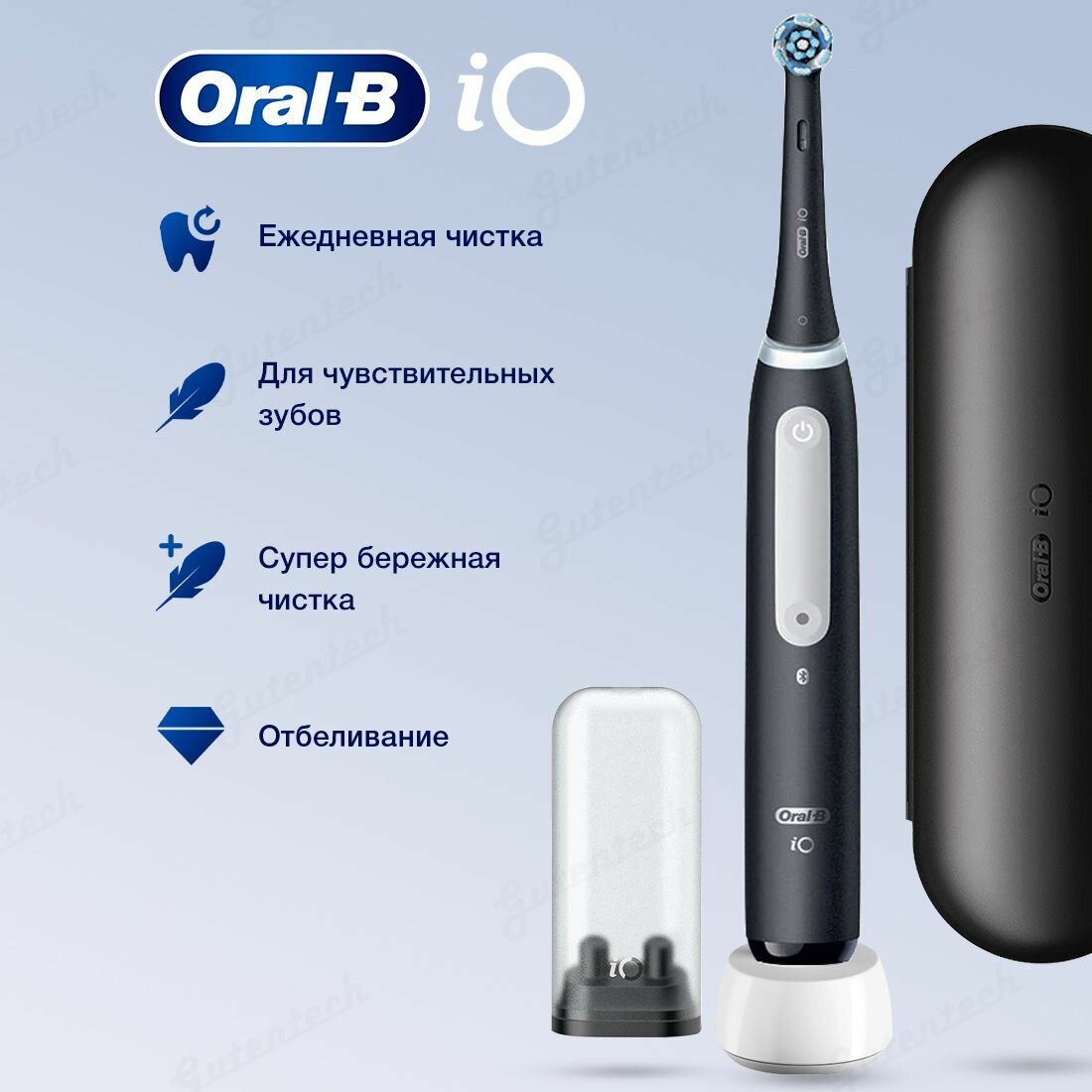 Электрическая зубная щетка Oral-B iO 4 Matt Black, дорожный футляр, 4 режима, с датчиком давления