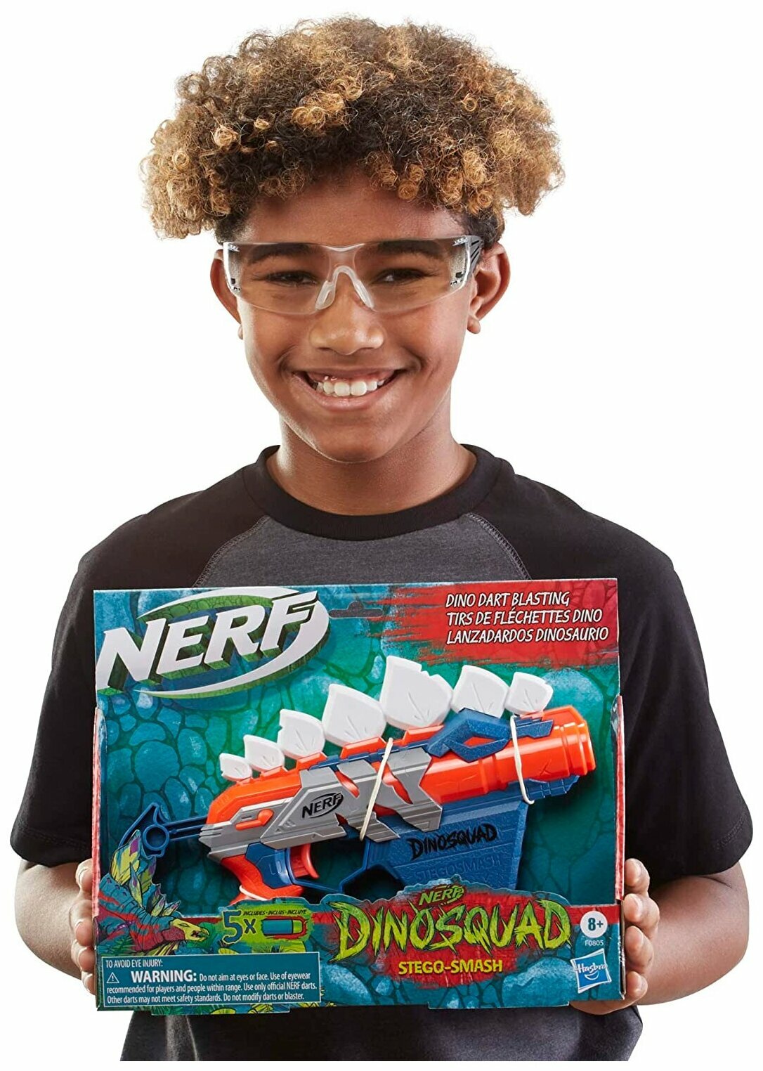 10 цен на Бластер Nerf Dinosquad Stego-Smash F0805, 20 см, синий/оранжевый