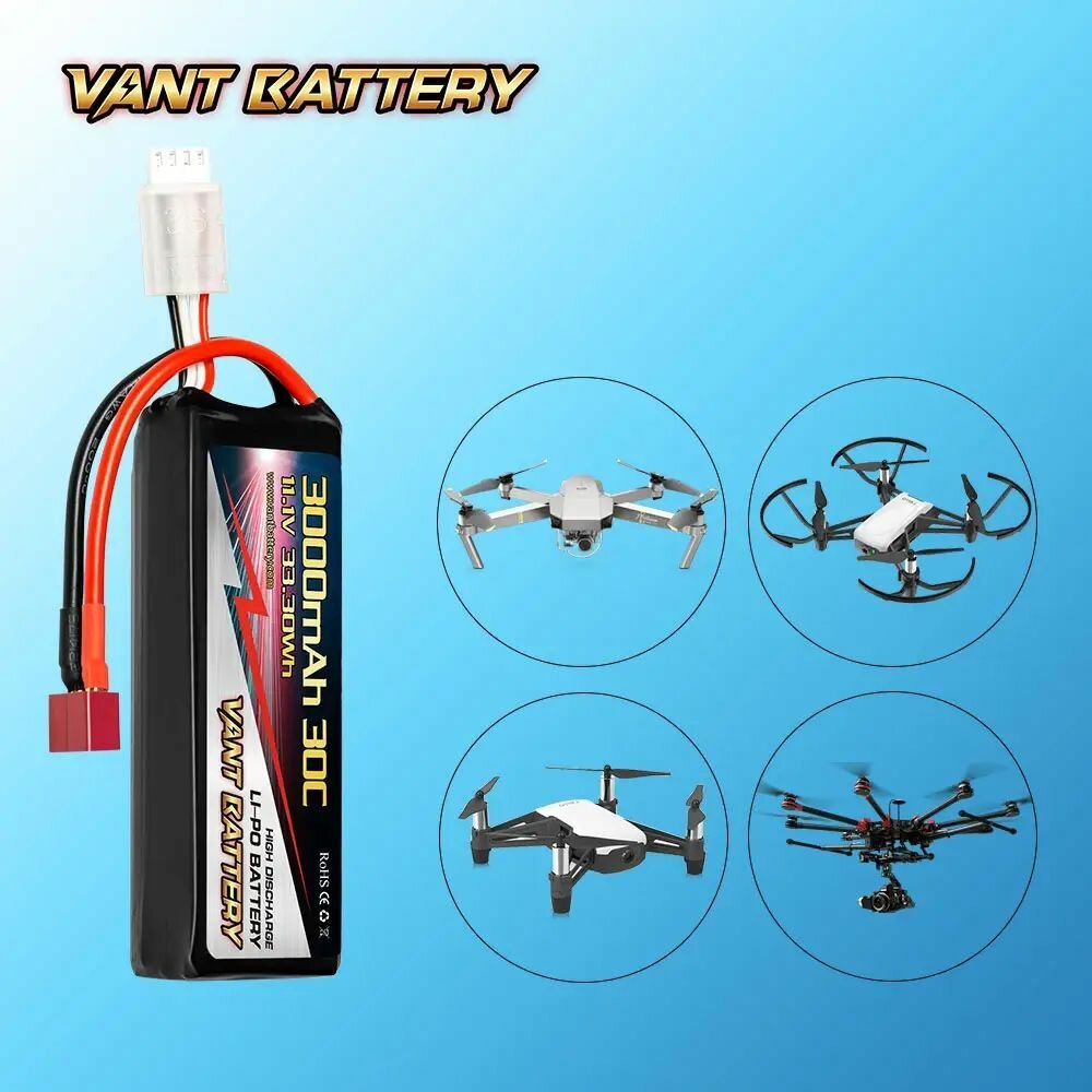 10 цен на Аккумулятор Vant LiPo 11.1V 3000mAh 30C, разъем T-Plug, для радиоуправляемых вертолетов, катеров, машин