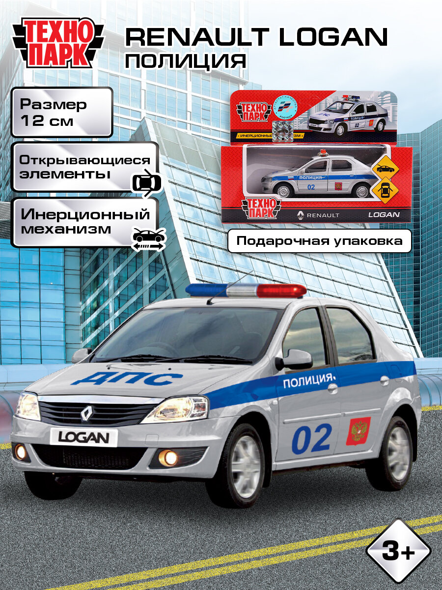 Отзывы на Машинка детская Renault Logan Полиция 12 см, Технопарк, серебристая, открываются двери и багажник, металлический корпус