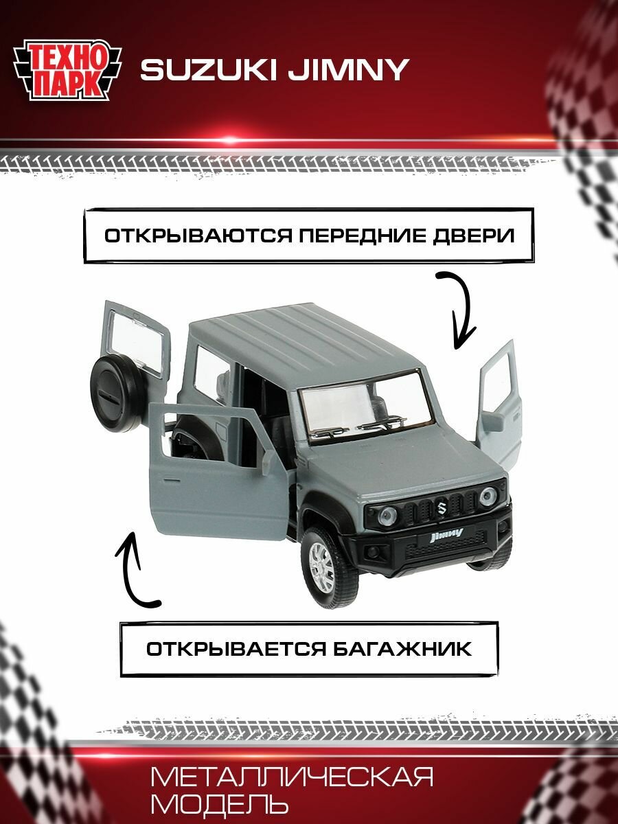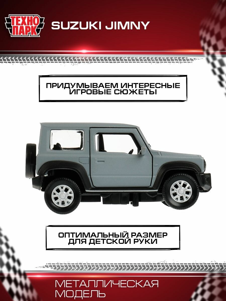 Машинка детская Suzuki Jimny 11.5 см, Технопарк, серая, открываются двери и багажник, металлический корпус информация: