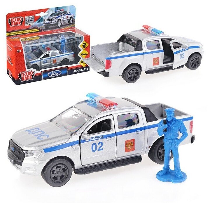 Отзывы на Машина Ford Ranger Пикап Полиция 12 см + фигурка 4,5 см металл инерция Технопарк, SB-18-09-FR-P+FG-WB