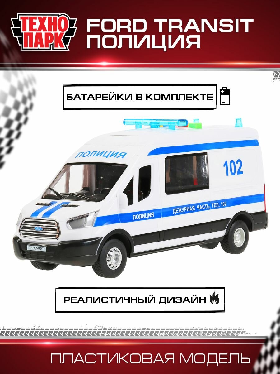 10 цен на Машинка детская Ford Transit Полиция 22.5 см, Технопарк, пластик, открываются двери и кузов, свет и звук