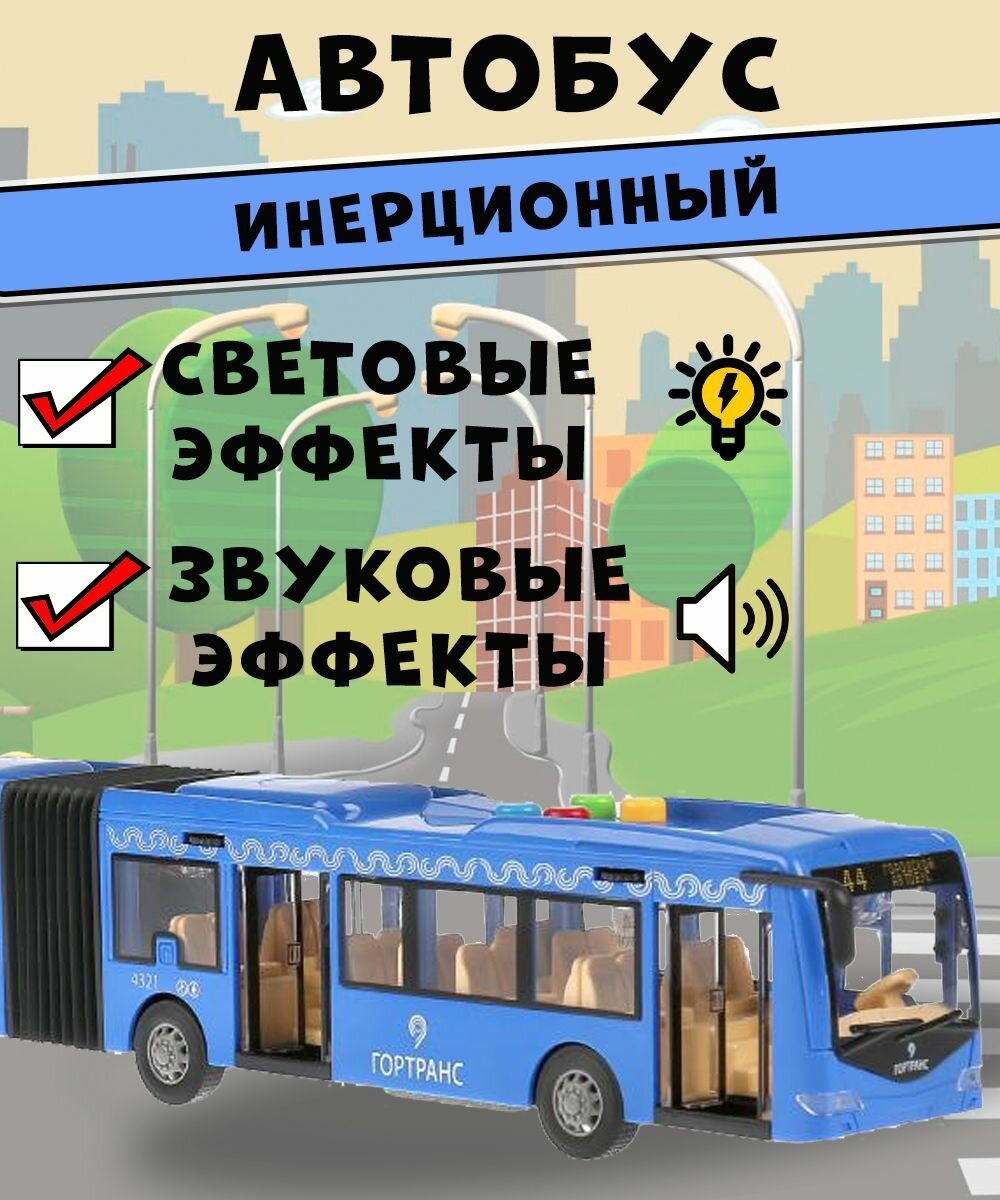 Отзывы на Автобус Технопарк сочлененный, синий, пластиковый, инерционный, свет, звук ВUS-45РL-ВU