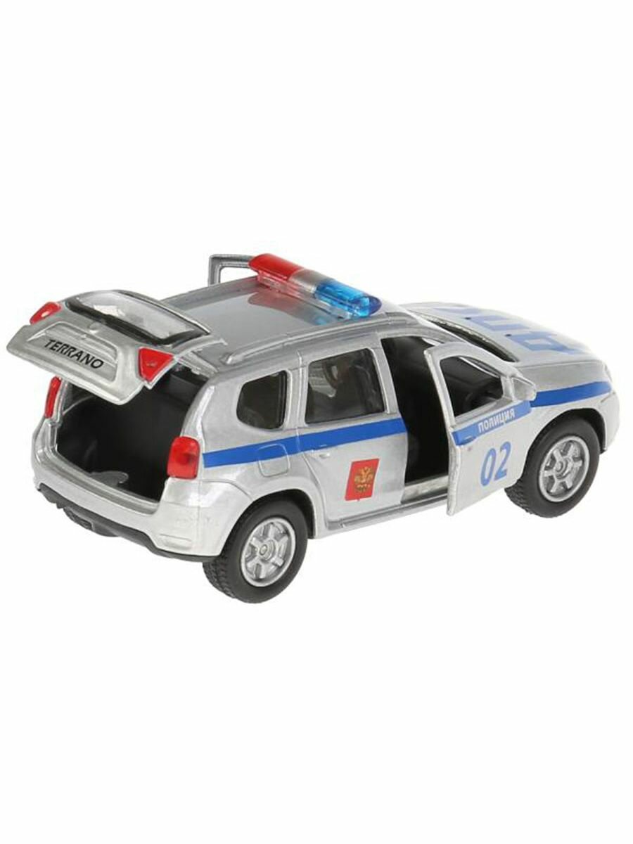 Машинка детская Nissan Terrano Полиция 12 см, Технопарк, серебристая, металлический корпус, открываются двери и багажник информация: