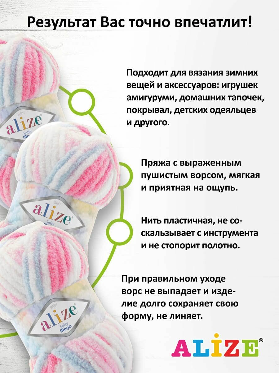 Отзывы на Пряжа Softy mega, Alize, принт - 5945, 100% микрополиэстер, 5 мотков, 100 г., 70 м.
