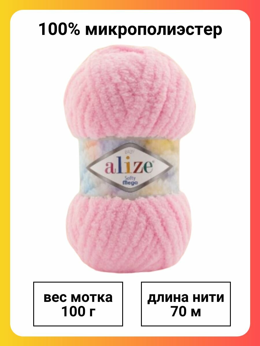 Пряжа Softy mega, Alize, принт - 5939, 100% микрополиэстер, 5 мотков, 100 г., 70 м. 1 431 ₽