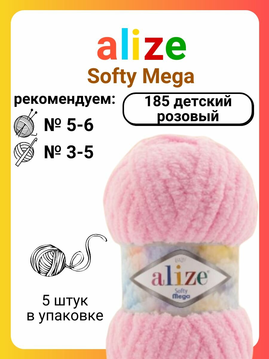 Пряжа Alize Softy Mega 185 детский розовый, 100 г, 70 м, 5 штук информация: