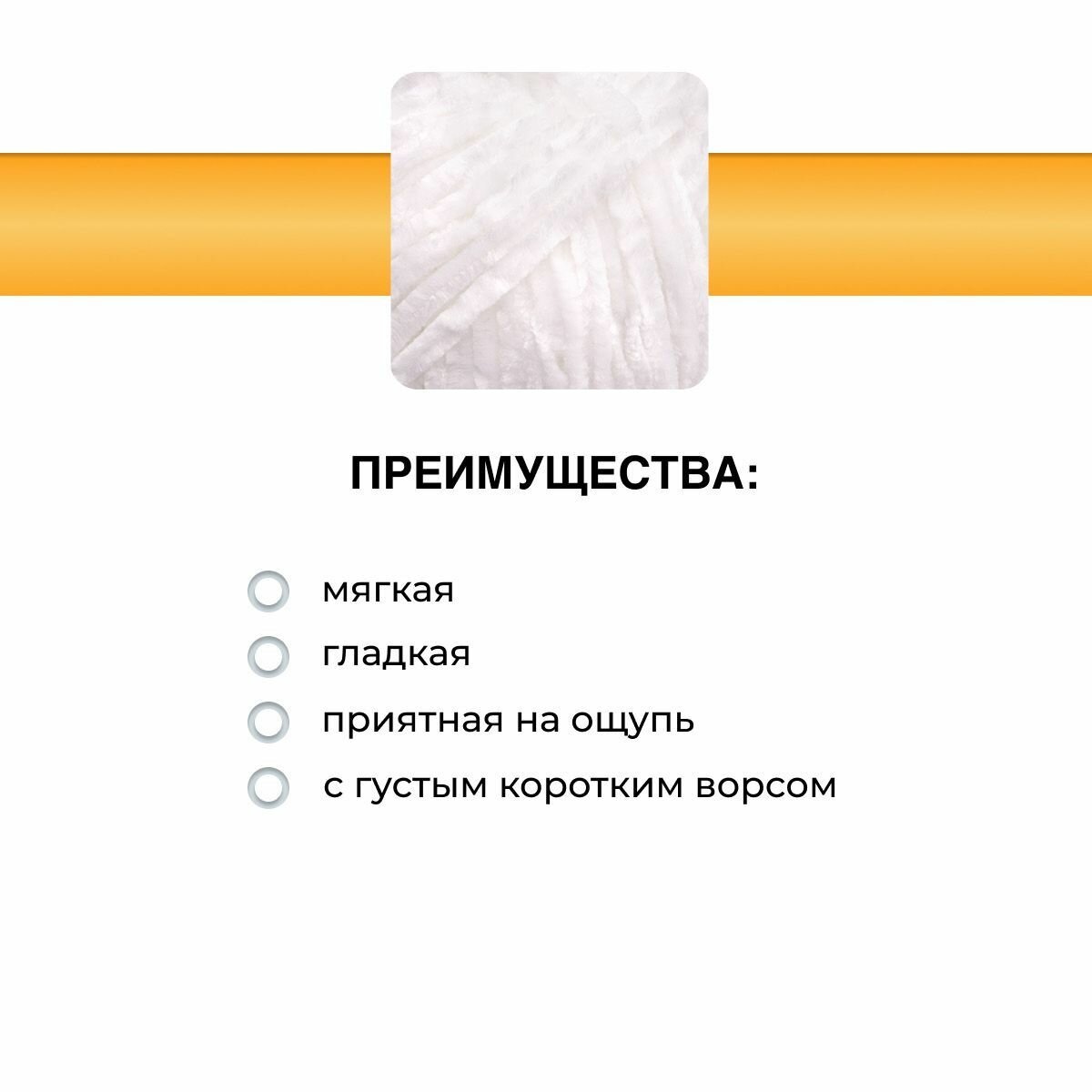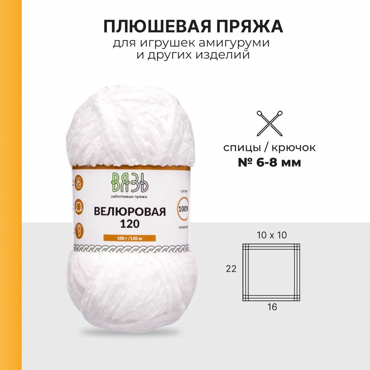 Пряжа для вязания Вязь 'Велюровая 120' 100г, 120м (100% полиэстер) (01 белый), 3 мотка информация:
