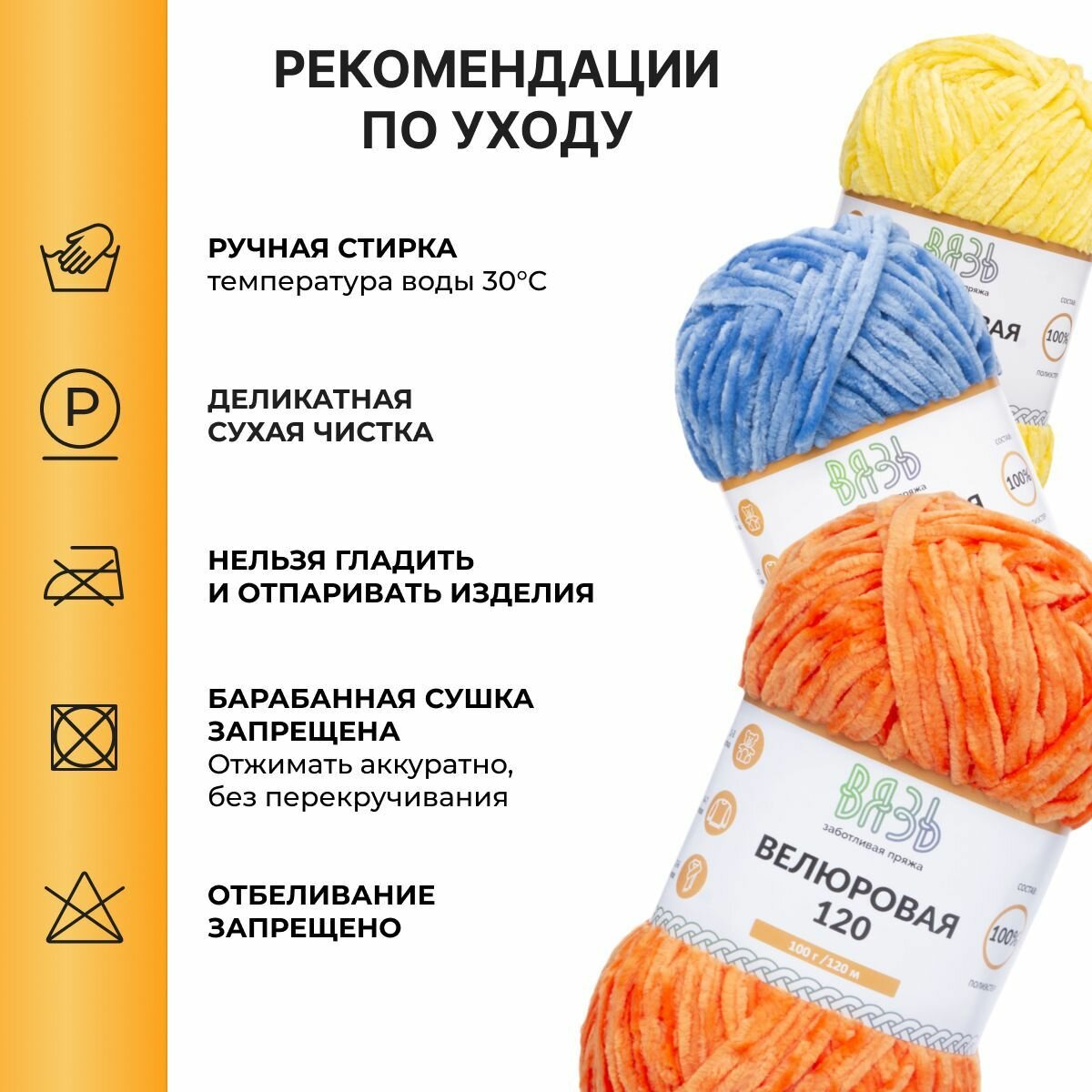 Пряжа для вязания Вязь 'Велюровая 120', 100г, 120м (100% полиэстер) (10 голубой), 3 мотка 601 ₽