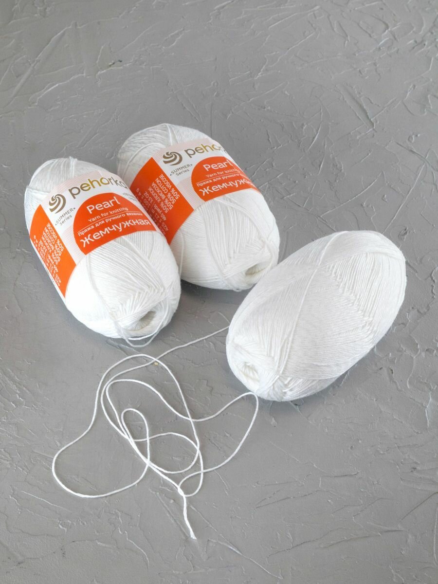 Отзывы на Пряжа для вязания Пехорка Жемчужная (01-белый) 50% хлопок, 50% вискоза 5 мотков 425 м 100 г