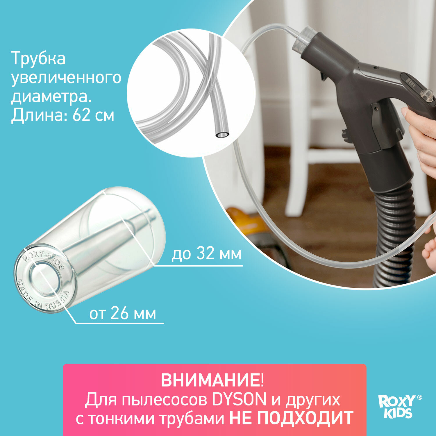 Адаптер для аспиратора к пылесосу от ROXY-KIDS и удлиненная трубка 62 см информация: