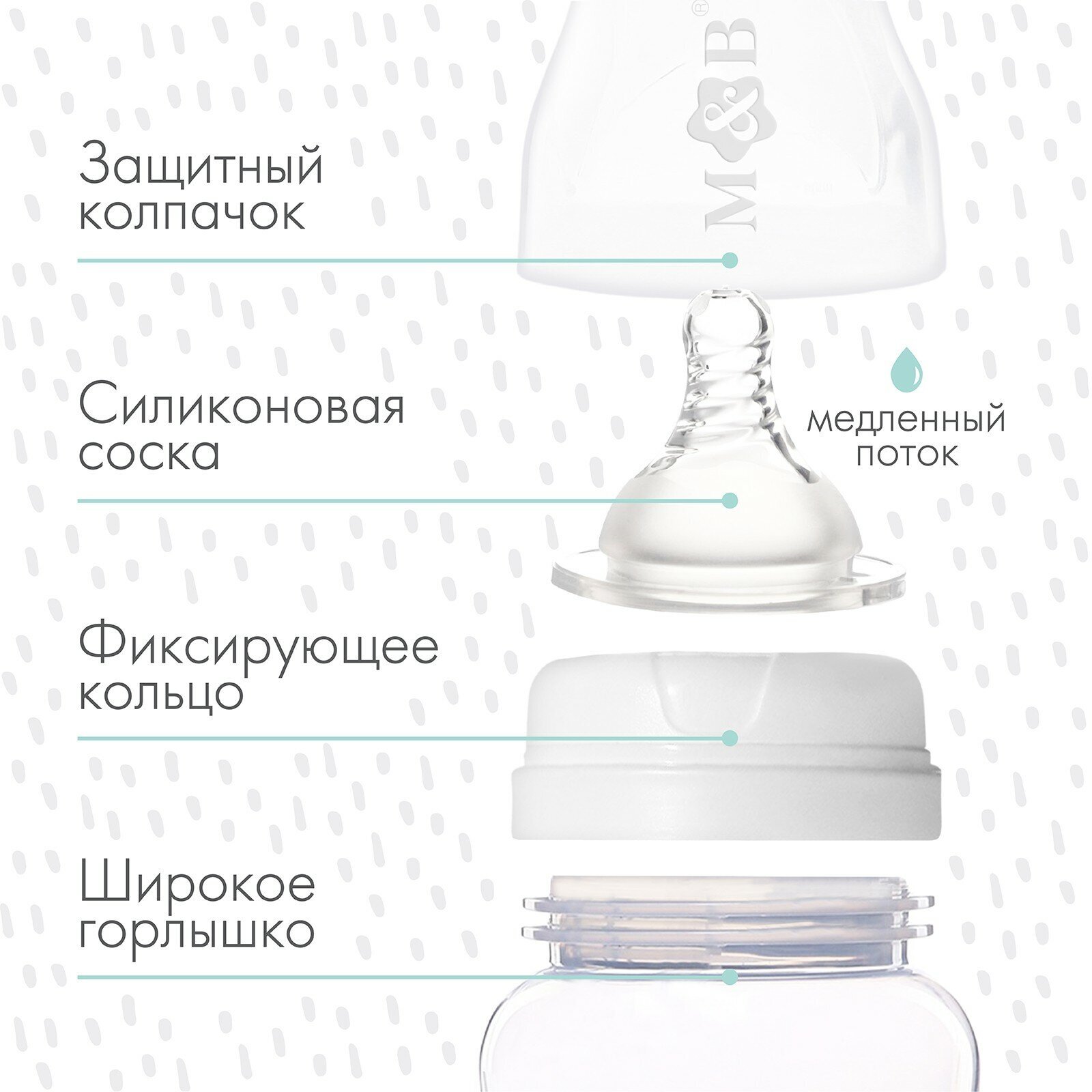 Бутылочка для кормления M&B, широкое горло, медленный поток, от 0 мес., 270 мл информация: