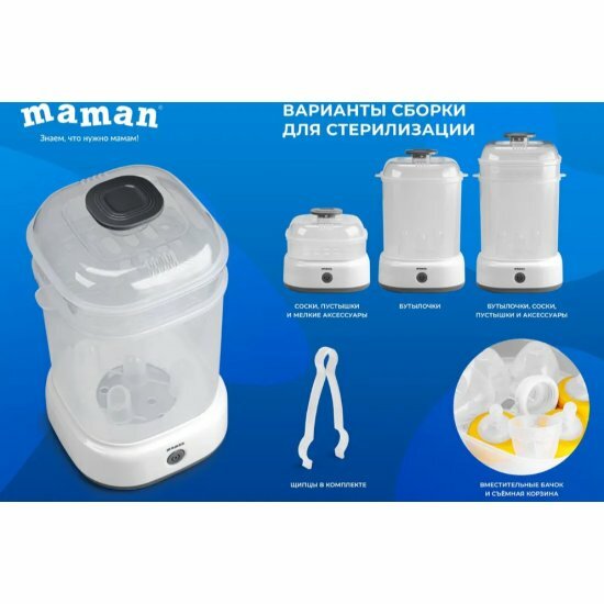 | Особенности | автоматическое отключение, для всех типов бутылочек, дорожный, световой индикатор, щипцы в комплекте |