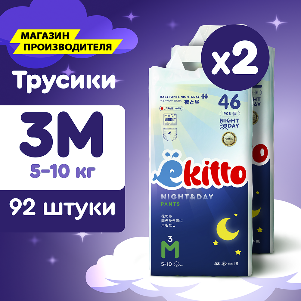 Ekitto Трусики-подгузники Night-Day (М) 46 шт 5-10кг
