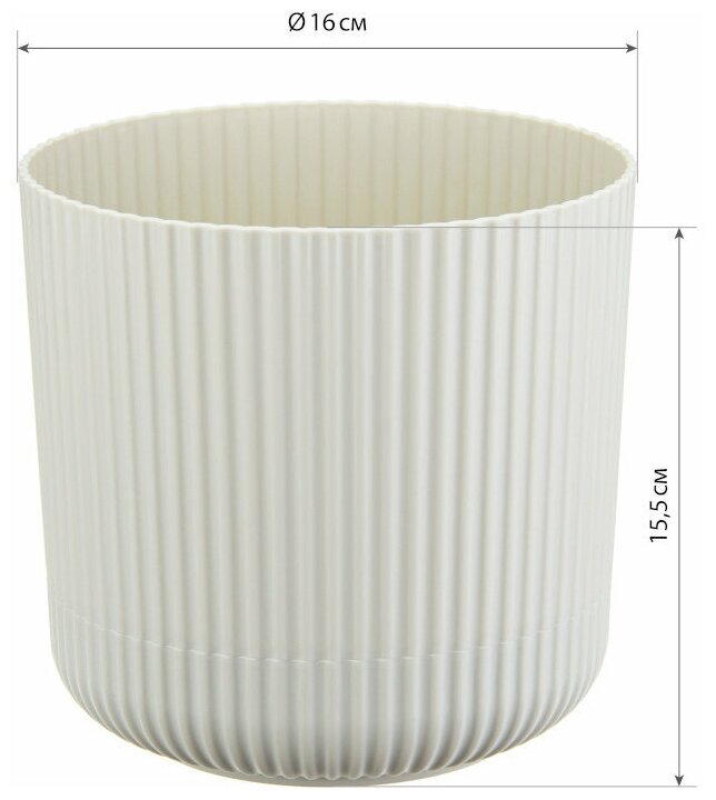 Кашпо Idea "Вельвет", диаметр 180 мм, 3,6 л, с пристегнутым поддоном, белое 637 ₽