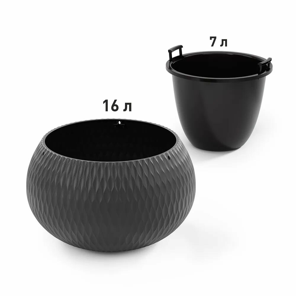 Кашпо "Жемчужина" 7л (графитовый) М8917 Пластмасса альтернатива информация: