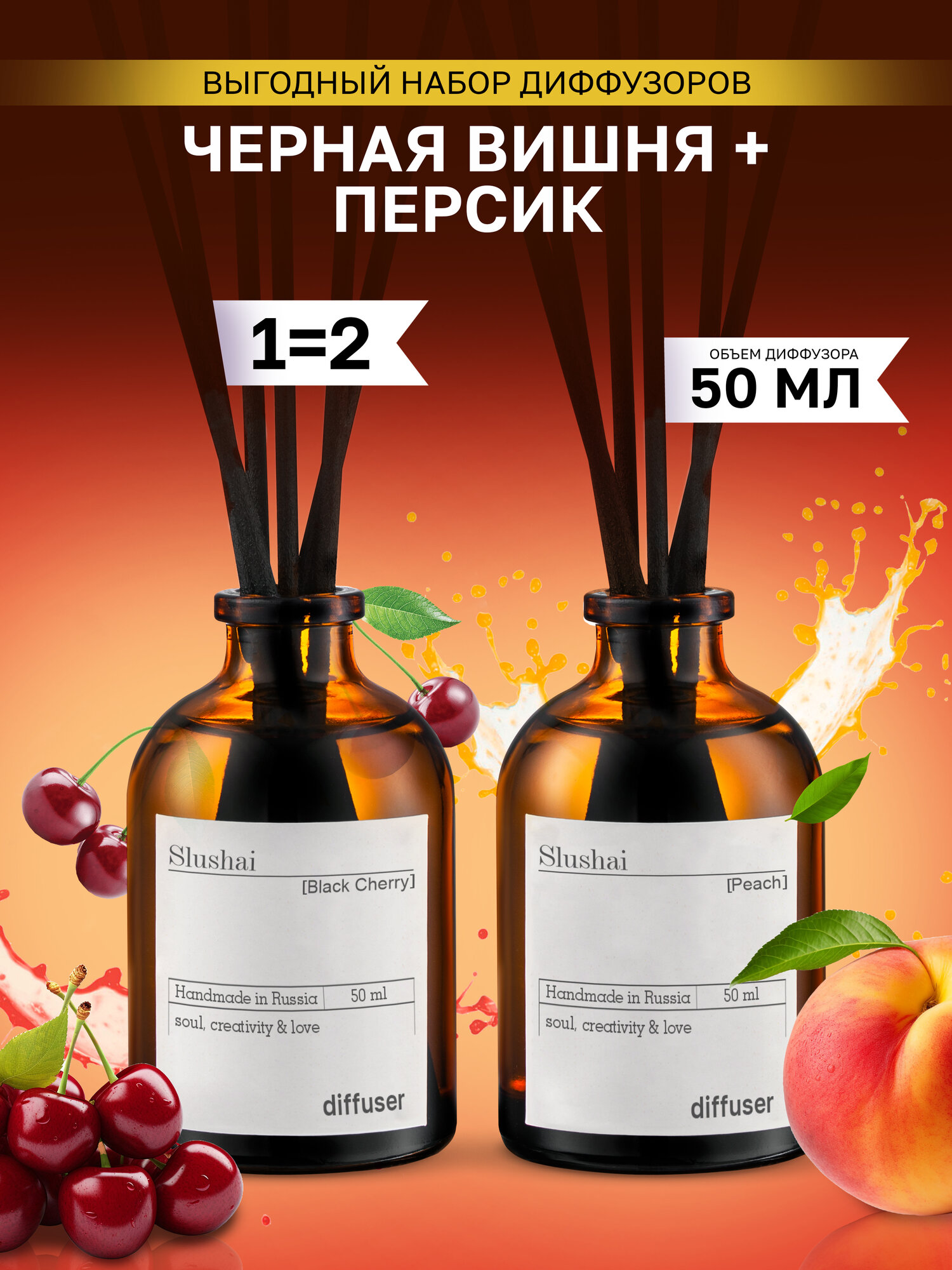 10 цен на Набор ароматических диффузоров Черная вишня + Персик / ароматизатор для дома с палочками 2 шт