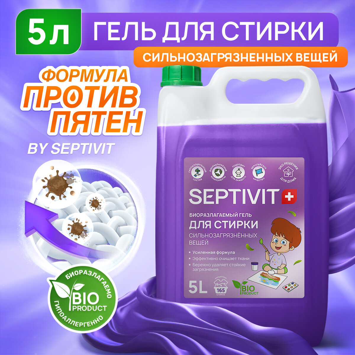 Гель для стирки Сильнозагрязненного белья SEPTIVIT / Гель для стирки детского белья гипоаллергенный / Средство для стирки, 5л информация: