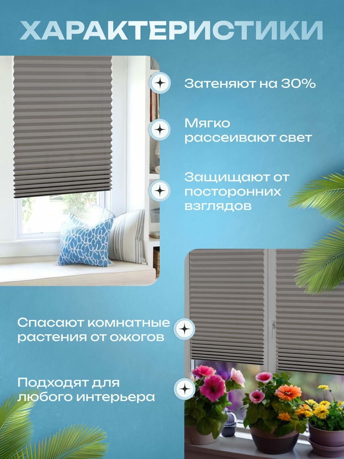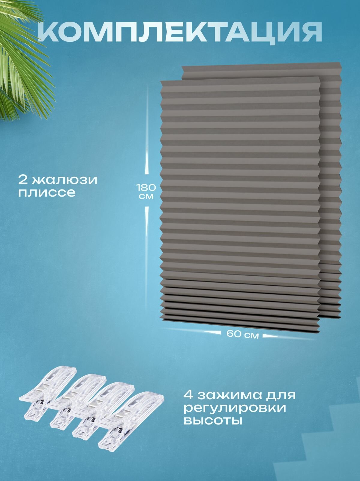 | Комплектация | Жалюзи плиссе 2 шт., 60х180см, 4 зажима |