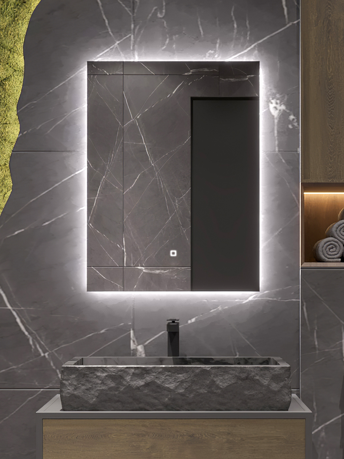 Зеркало Квартал 80*60 с холодной LED-подсветкой вертикальное