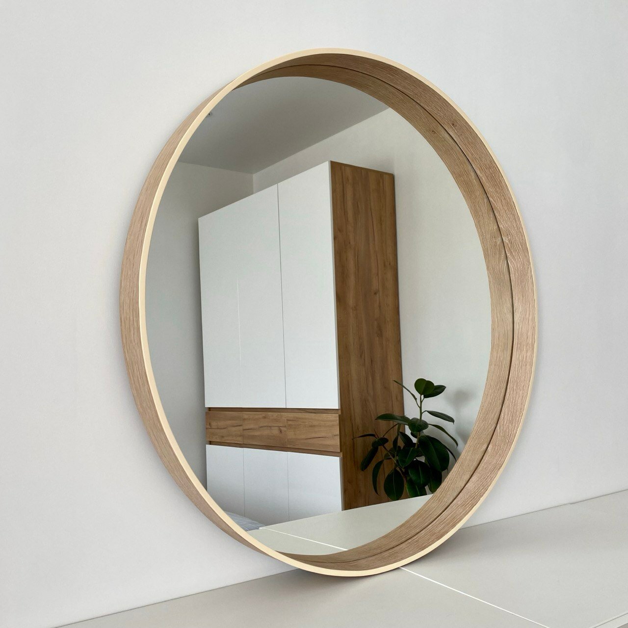 Отзывы на Круглое интерьерное зеркало в деревянной раме 70 х 70 для ванной, прихожей, гостиной, спальни цвета беленый дуб