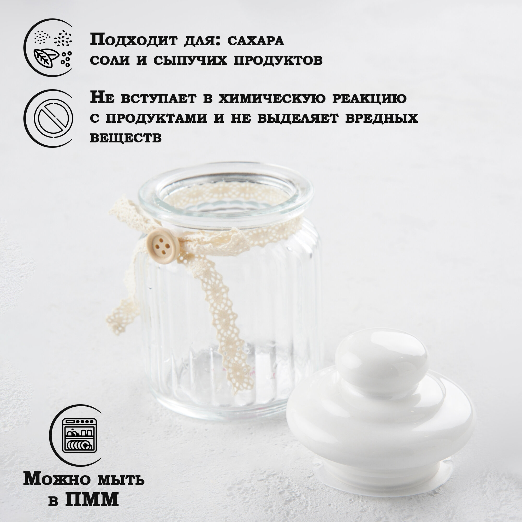 Банка для сыпучих продуктов с керамической крышкой, сахарница стеклянная Доляна «Варенье» 250 мл информация: