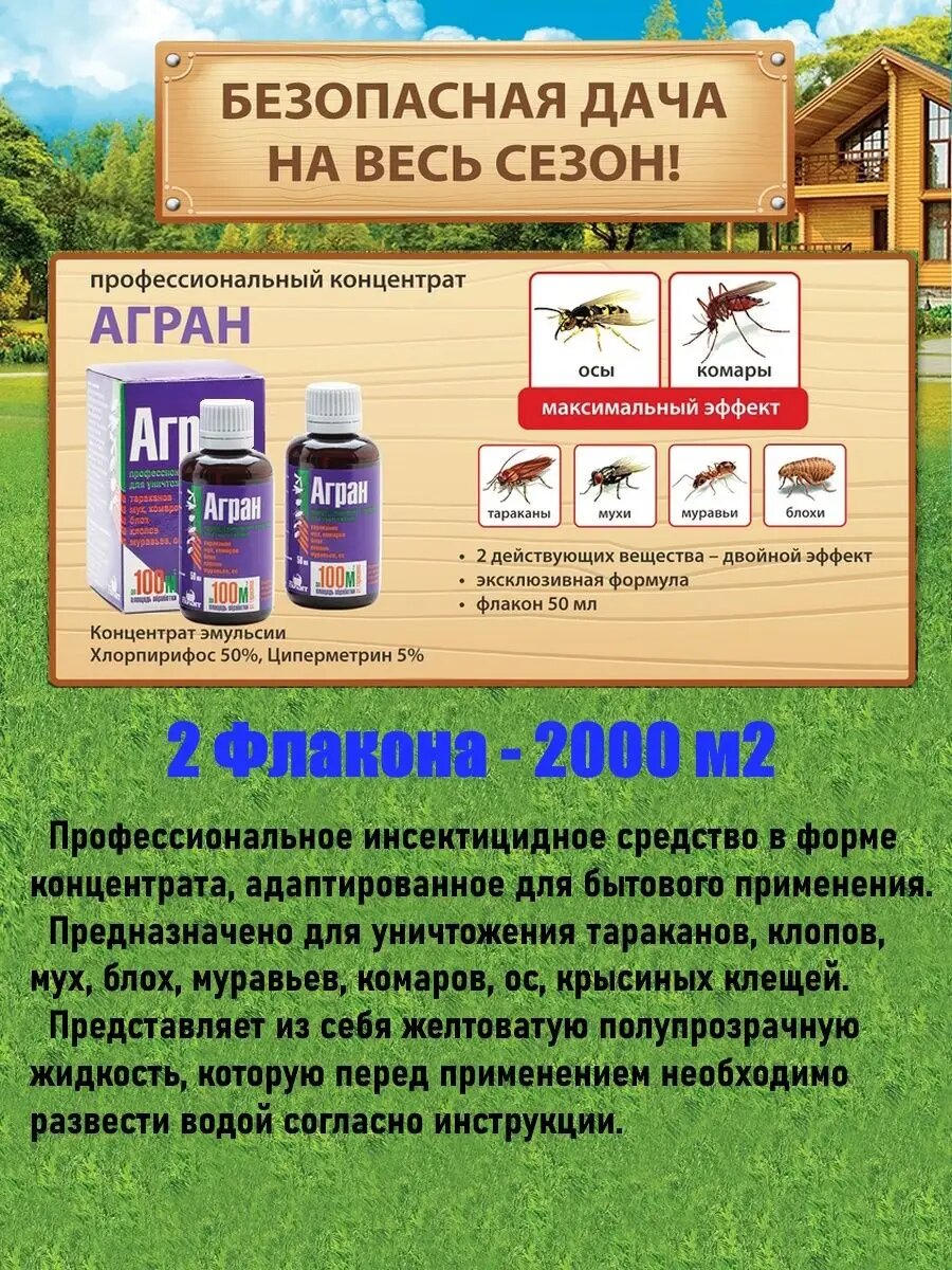 Агран 50 мл. 2 шт. оригинал / от клопов, тараканов, блох, муравьев, мух, и других насекомых информация: