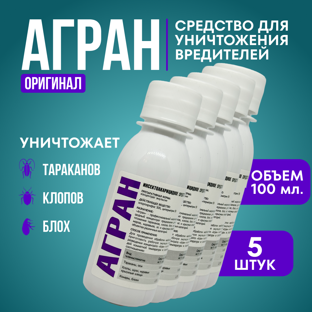Агран 100 мл. 5 шт. оригинал / от клопов, тараканов, блох, муравьев, мух, и других насекомых информация: