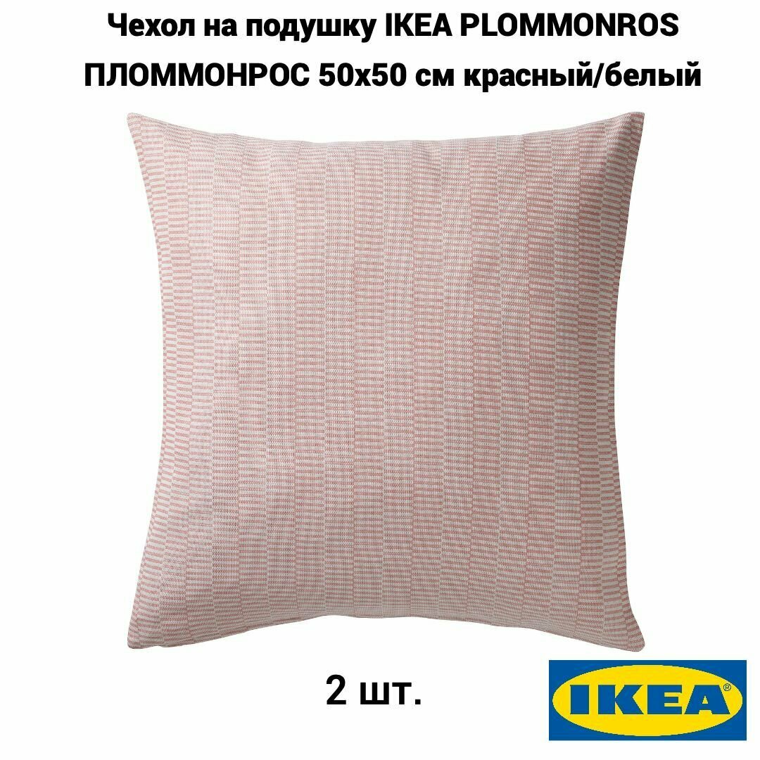 Комплект 2 шт. Чехол для подушки IKEA PLOMMONROS пломмонрос, 50x50 см, красный/белый информация: