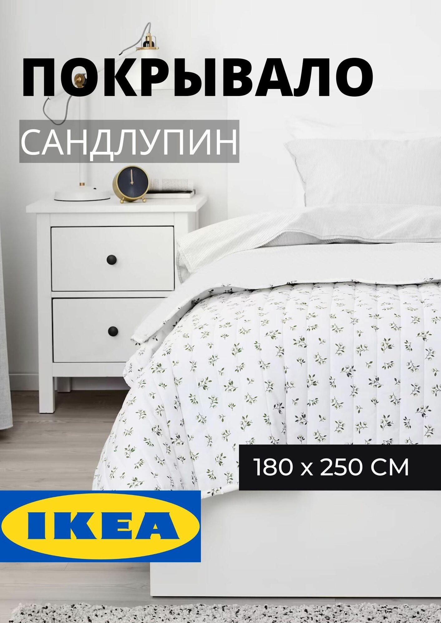 Покрывало икеа для спальни, стеганое сандлупин 180х250 информация: