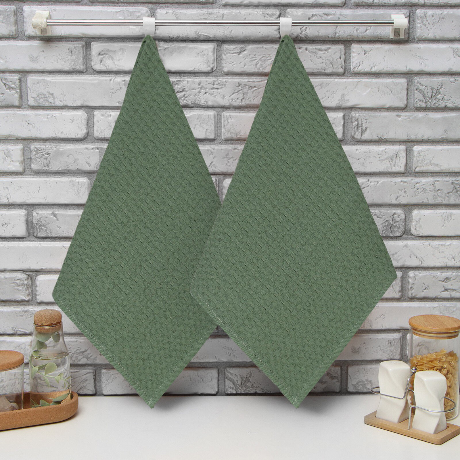 Набор кухонных полотенец "Доляна", цвет хаки, 35х60см-2шт, 100% хлопок, вафля, 220 гр/м2 информация: