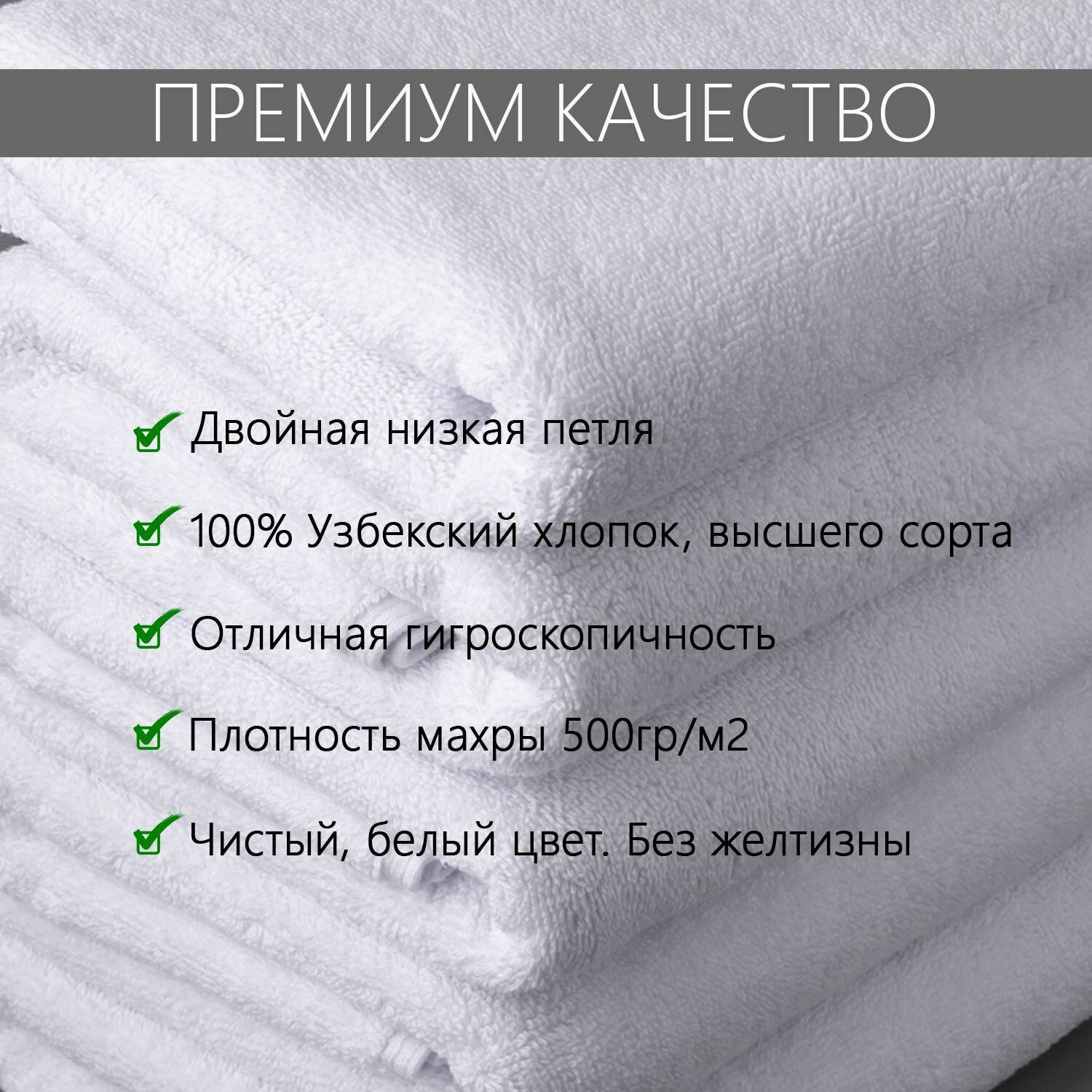 Отзывы на Полотенце махровое Отельное 500гр (40х70 см), двойная петля, 100% хлопок, 1шт.