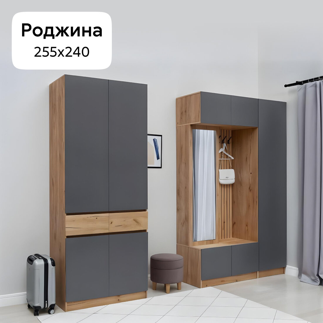Прихожая с зеркалом Нонтон Роджина дуб крафт / графит, 255х52х240 см информация:
